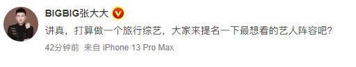 张大大:“讲真,打算做一个旅行综艺,大家来提名一下最想看的艺人阵容吧? ”