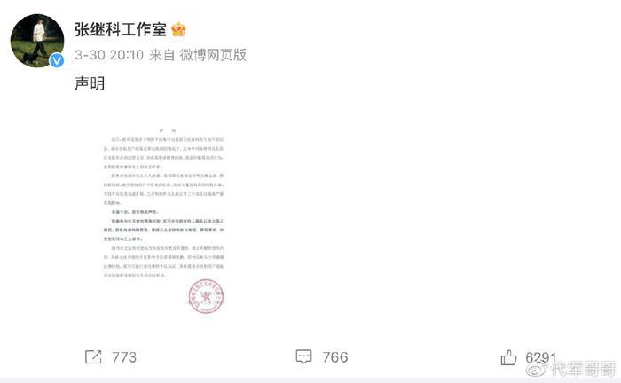 3月20日晚上,张继科方发出声明严厉斥责网传造谣抹黑张继科的信息,要求所有侵权方删除相关信息,以免对张继科造成更为严重的伤害。反而把舆论推向了另一个高潮。
