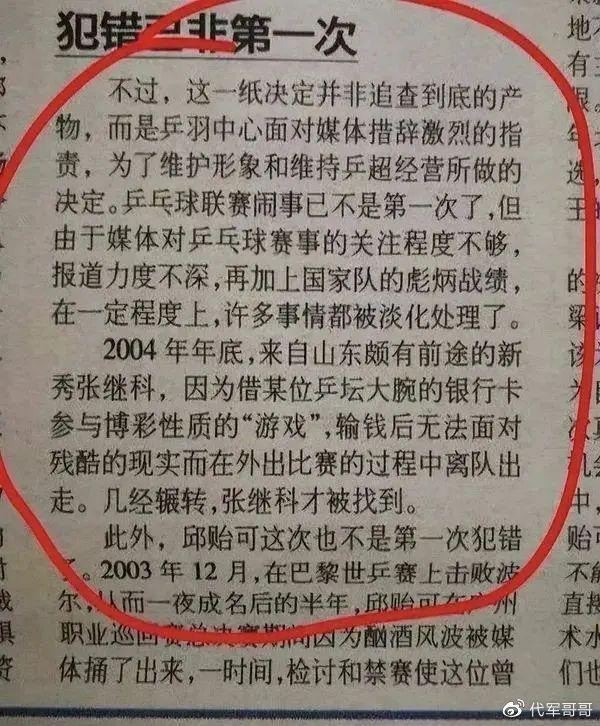 其实,这已经不是张继科第一次涉及“赌博”风波了。根据新闻报道,张继科在2004年的时候就有过赌博。当时,他借用乒坛大佬的银行卡参与博彩游戏,输钱后无法面对残酷现实在外出比赛过程中离队,几经辗转才被找到,那时他才16岁。
