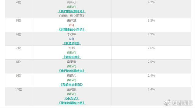 在榜的其他韩国演员也同样优秀,前后排名数据差异也不大,个人投票率占比都未突破10%。