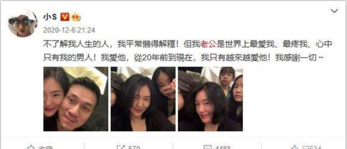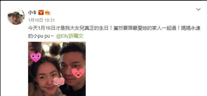 为了打破外界的传言,小s最近一直在微博上示爱。比如,她在1月16日晚的微博上写道:“今天,1月16日是我大女儿真正的生日!当然,和最爱她的家人在一起!妈妈总是有点小普。”女儿是主角,但照片中只露出了她的半张脸。相反,她和丈夫是近距离接触。我想你可以想象这种意图。