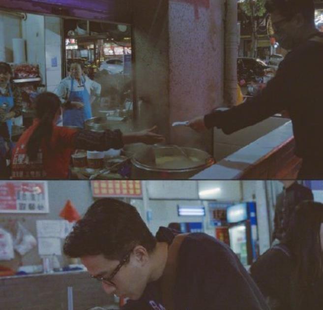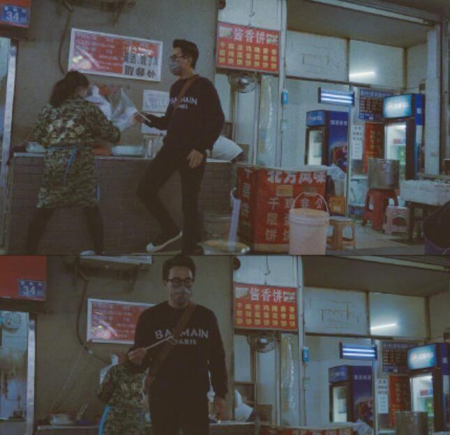 吃着小吃,一派人间烟火气息,毫无明星架子。