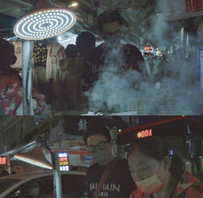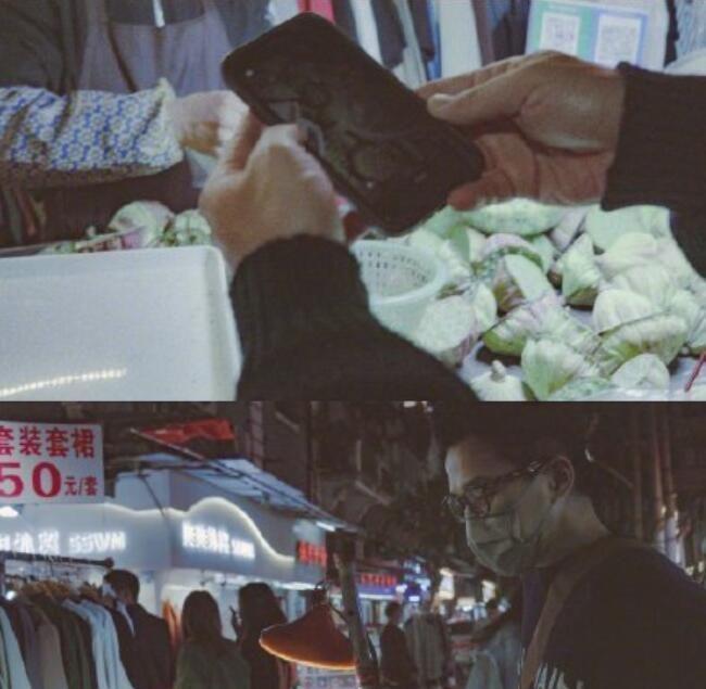 图片中可以看出,刘恺威惬意地漫步在街头夜市中,