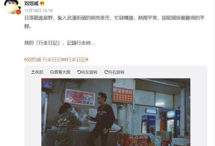 11月19日,刘恺威在社交平台上发布自己的plog。