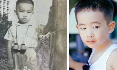 左侧是Jasper3岁时候的照片,右侧是陈小春的儿童照