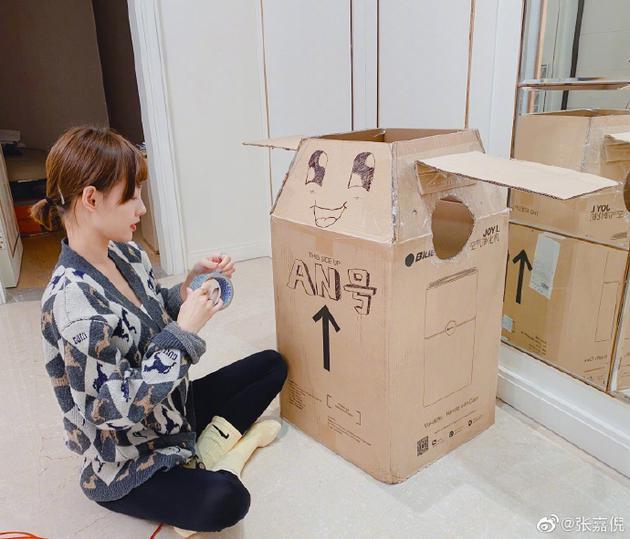 张嘉倪工作的同时也不忘与儿子的互动,还帮助儿子做手工。