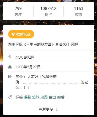 看下他的微博介绍:“大家好!我是张嘉倪…………的老公!!!”