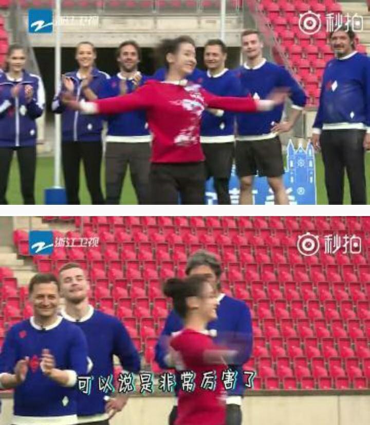 之后面对多才多艺的捷克队员,鹿晗赶紧献宝似的喊热巴出来展示其独家秘技转圈圈来震慑对方,一脸自豪和急切的样子也是没谁了。