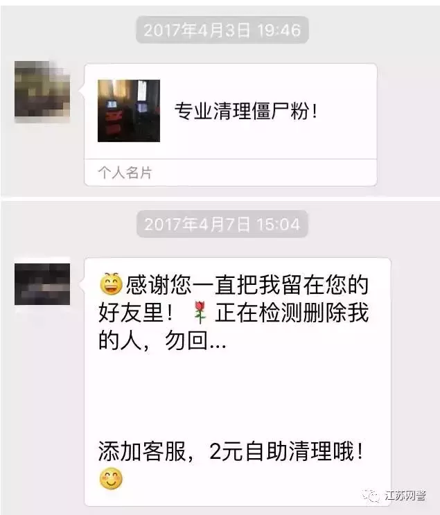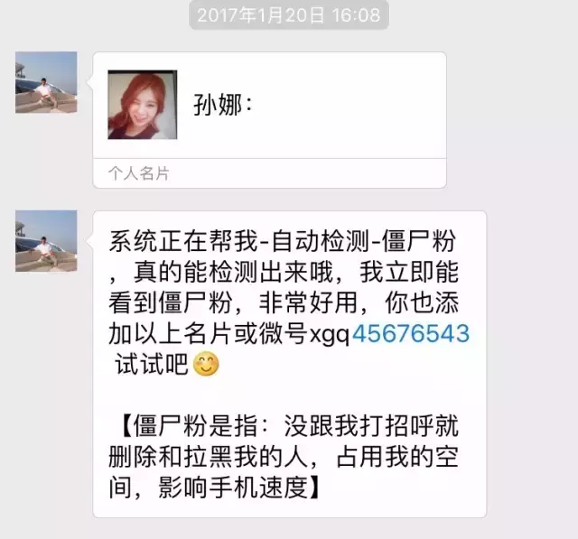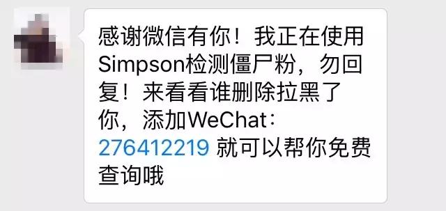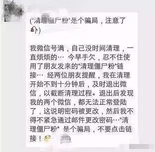 最可怕的是,僵尸粉工具外挂在进行消息发布时,会不断骚扰你的所有好友,并在发布测试删除消息时也用链接或者微信号的形式来做自我推广,如果部分好友也有清粉的需求,一不小心就会像禽流感一样人传人,将会使更多人上当!