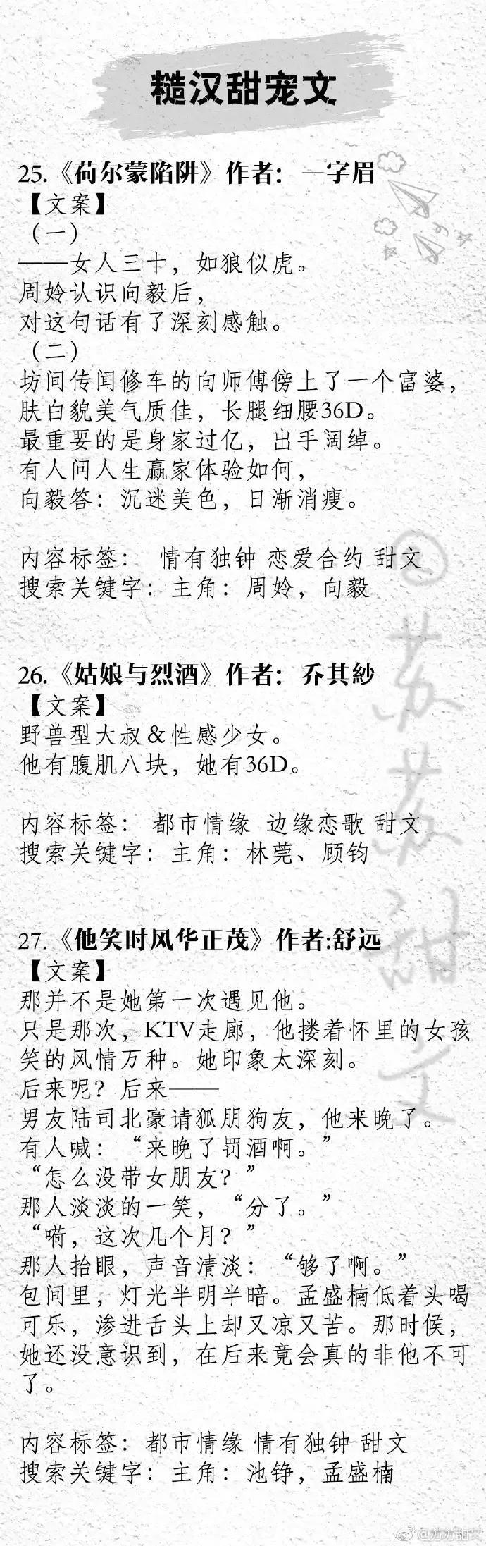 今天推荐二十七本糙汉男主文,男主荷尔蒙爆棚,撩到飞起,超带感!真的太好看啦!喜欢的小仙女一定每本都要看~
