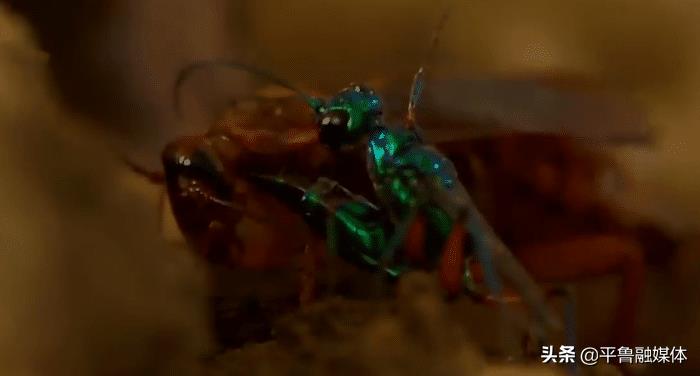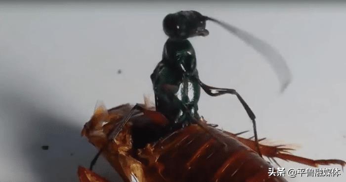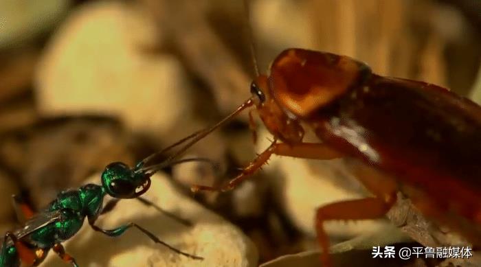我不知道蟑螂会不会做梦,但是如果会的话,我想扁头泥蜂绝对是它们永远的噩梦。这个生物可怕的地方不是强大的攻击力,而是它们能让打不死的蟑螂失去恐惧感以及逃命的意志,心甘情愿的变成它幼虫的大餐。当幼虫从蟑螂体内冲出让其身体爆裂的场景,我相信是这就是异形电影的灵感来源。