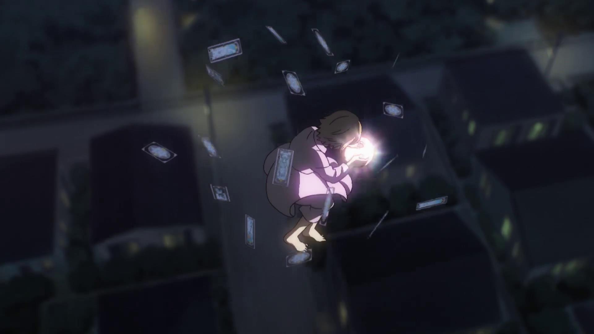 关键时刻,小樱抓住了这个光球,与神秘人不断撕扯,但是所有的卡牌魔力还是消失了,小樱直接坠落了下去。在坠落的过程中,小樱揭开了神秘人的面纱,她果然就是小樱的好朋友秋穗。