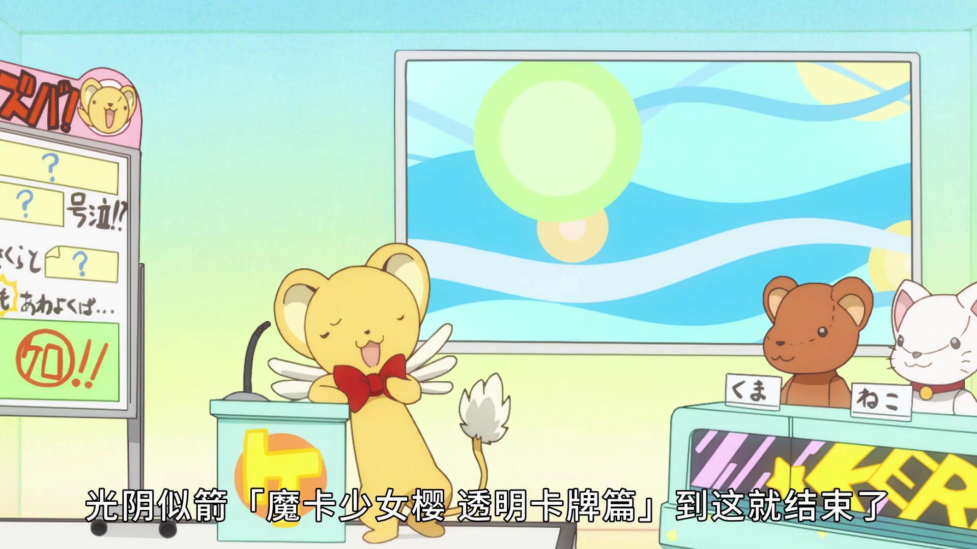 回到了房间的小樱发现小可根本不记得刚才发生的事情,于是小樱也装作平常一样,充满了活力。看到青春活力的小樱,小可感叹,这才是他认识的魔卡少女樱。一切似乎又回到了正常的轨道,只是小樱心中已经做好了什么样的决定。魔卡少女樱透明牌正是大结局!这样的结果你满意吗?