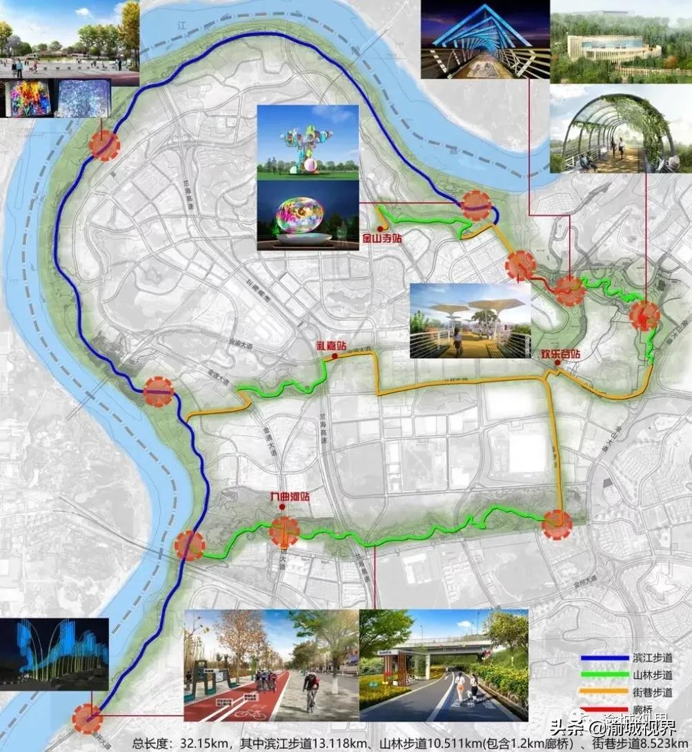 全长20公里,“一主三支”,以体验旧城市井生活和老厂创意文化为主题,由活力滨水花溪带主线串联李家沱老街、红光大道科创服务街、奶母山登山线3条支线步道组成。