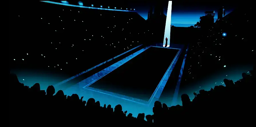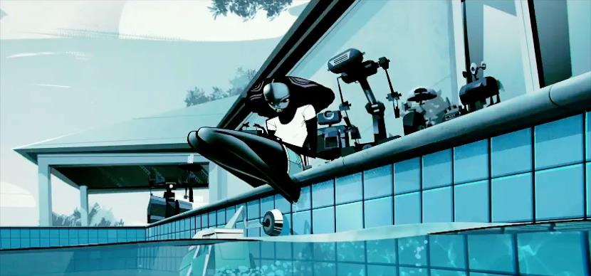 在观众的一片惊呼中,Z跳入泳池,关闭了自身高级思维功能,拆解了身体,最终变成最开始的那台清洗泳池的小机器人。Z终于回到了TA心中的家,找回了属于自己的简单和纯粹的快乐 - 那片简简单单的蓝色小瓷砖所赋予的快乐,这就是Zima Blue。