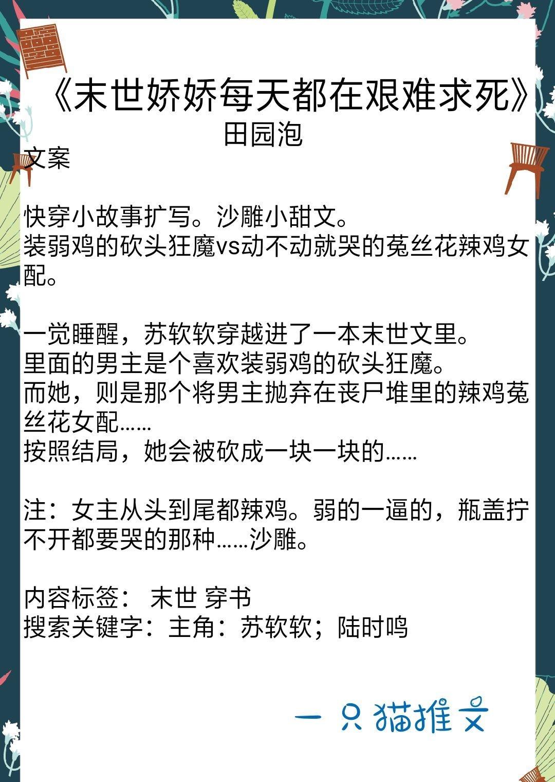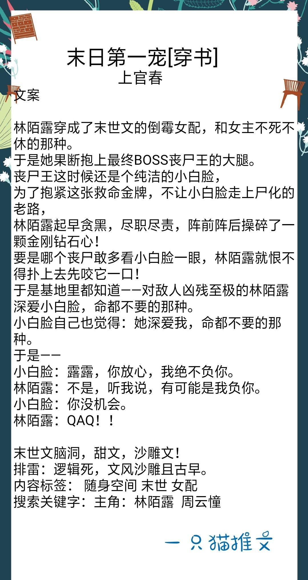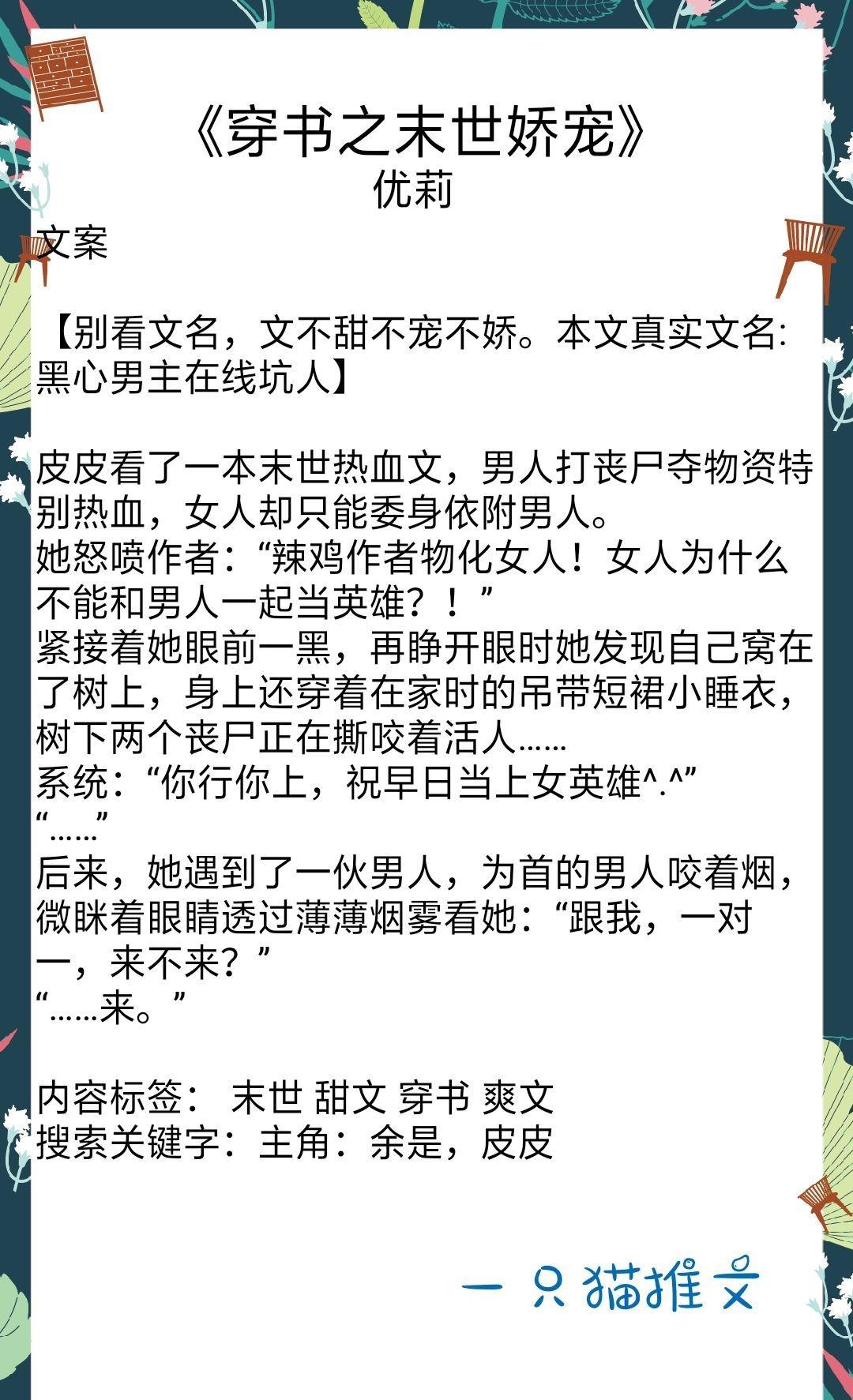 我之前不爱看末世文,总有在看釜山行的感觉,太害怕了,但是为了粉丝们我盘点了几篇超高人气的末世文来看,看了《末世娇娇每天都在艰难求死》我爱上末世文了,好甜,好好看!!