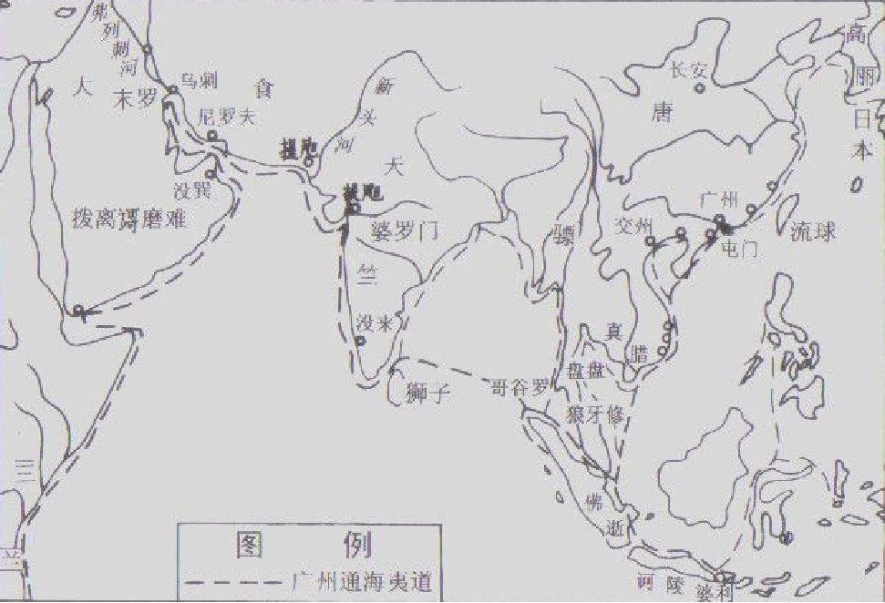 隋唐时期,广州成为当时中国第一大港。由广州经南海、印度洋到波斯湾各国的航线是当时世界上最长的远洋航线。历史上南海诸国会派使臣通过海上丝绸之路访问中国。自唐代起,中国就开始设驿馆接待外国使节。在唐代,伴随着中国造船、航海技术的发展,中国通往东南亚、马六甲海峡、印度洋、红海,及至非洲大陆的航路的纷纷开通与延伸,海上丝绸之路替代了陆上丝绸之路,成为中国对外交往的主要通道。宋代的造船技术和航海技术愈发成熟,指南针被广泛应用于航海,中国商船的远航能力大为提高。这在很大程度上促进了海上贸易发展。为防止钱币外流,南宋政府下令以丝绸、瓷器交换外国商品。宋代海上丝绸之路的持续发展,大大增加了朝廷和港市的财政收入,一定程度上促进了经济发展和城市化生活,也为中外文化交流提供了便利条件。当时,同中国贸易的国家和地区已扩大到亚、非、欧、美各大洲。