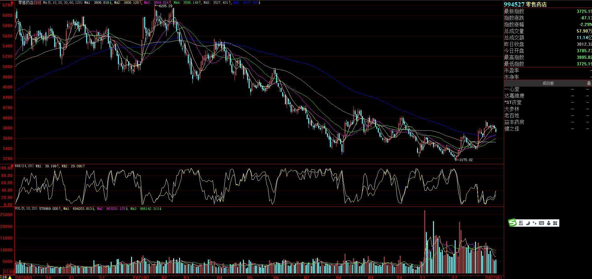药品零售行业也是零售板块之一,而在2020年A股大牛市,零售业板块表现很差,涨幅仅为10%,2021年则更差,下跌6.7%,可以说这两年表现最差的板块,零售业板块肯定是其中之一,零售药店指数从2021年1月6200点跌至3700点。;但市场是公平的,到2022年,经过两年的调整,笔者认为将否泰来,迎来价值重估回归。