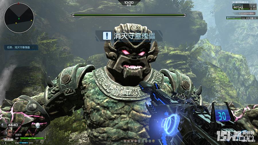 BOSS守墓傀儡身形巨大如山,拥有一击秒杀的可怕攻击力。其技能有随机的左右手拍地、双手释放的AOE技能,狂暴之后出现的频率会更多次,范围极大!一开始最佳的攻击目标只有身躯,弱点在其身后,需要将BOSS的血量消耗到1/3时才能触发绕到其身后攻击弱点!