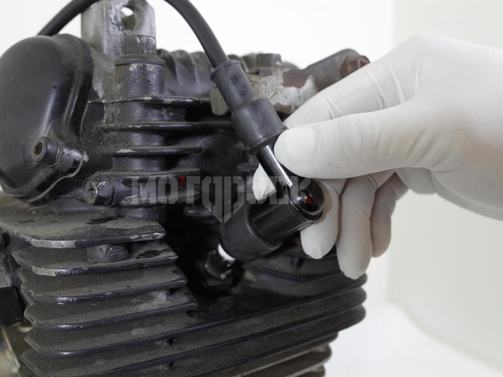 3 以顺时针的方向用手将火花塞旋转进原本位置