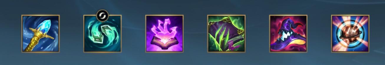 一般情况下,辅助一局游戏下来最多就是两件成装加鞋子。如果还有多余的钱,建议先把鞋子附魔上双生暗影,一方面便于开视野,基本是软辅标配,另一方面也可以配合大招打伤害,让对手寸步难行。如果之后还没结束,那就再出鬼书施加大范围的重伤,大帽和无限法球提高伤害。切忌出法穿杖,AP女枪的伤害主要类型其实还是物理伤害,法穿杖收益不大。