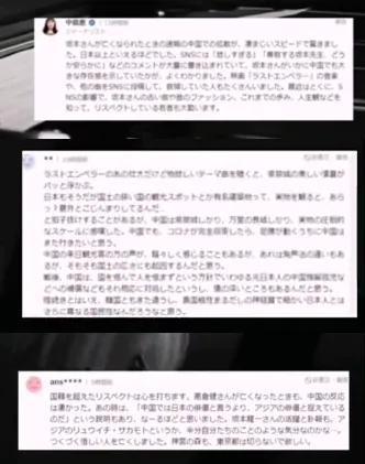 “坂本先生去世的消息,在中国传播速度之快,让我感到震惊,这比日本传播的速度要快多了。社交媒体上大量写着太难过。尊敬的坂本老师,请您安息,等评论。可见坂本先生在中国的影响力之大,有很多人在社交媒体上发布《末代皇帝》音乐和其他歌曲来哀悼。最近由于社交媒体的影响,有很多人开始了解坂本先生的老歌,旧时尚,历史,人生观,并对他表示敬重。”