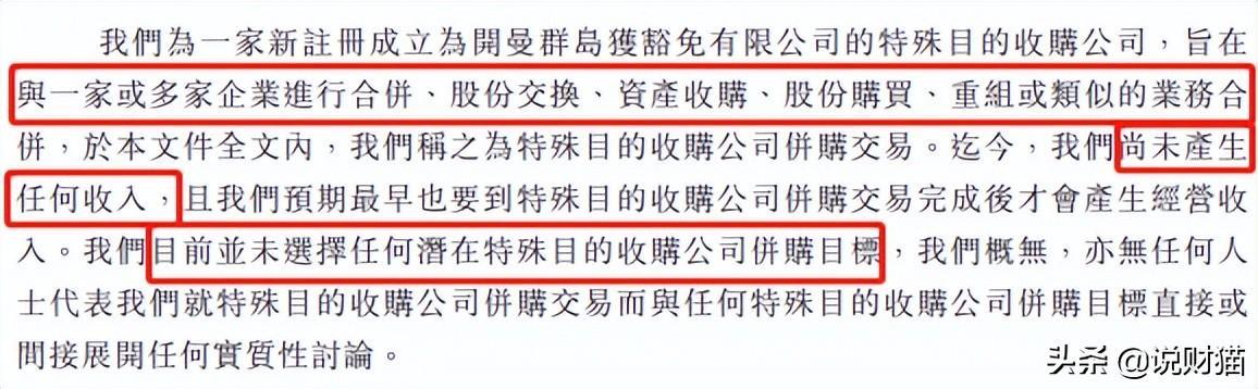 招股书显示,这是一家目前“零收入”的公司,旨在与一家或多家企业进行合并、股份交换、资产收购、股份购买、重组或类似的业务合并。