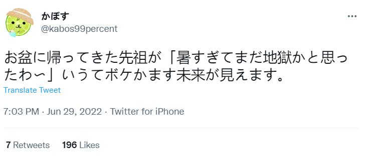 “过两天盂兰盆节,祖先回来都会抱怨:‘太热了,我还是回地狱吧’。”