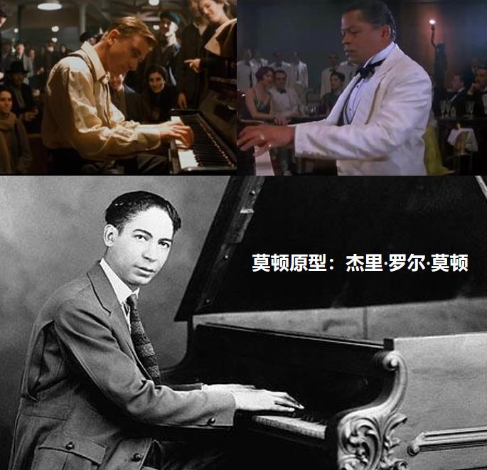 当这位爵士乐鼻祖莫顿登上船的时候,我们才意识到,1900一直弹奏的钢琴曲就是爵士乐。而这位莫顿是来寻找自己曾经丢失的1900(真实梦想)。从两个人照片的结合也可以看出,莫顿的原型:杰里·罗尔·莫顿就是1900与影片中莫顿的综合。(如图)