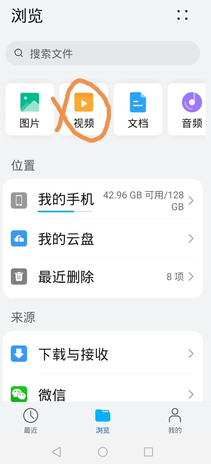 (一)从手机的视频文件夹里找。打开“文件管理”后,马上就能看到一个“视频”文件夹,手机上的所有视频资料都可以在这里找到。