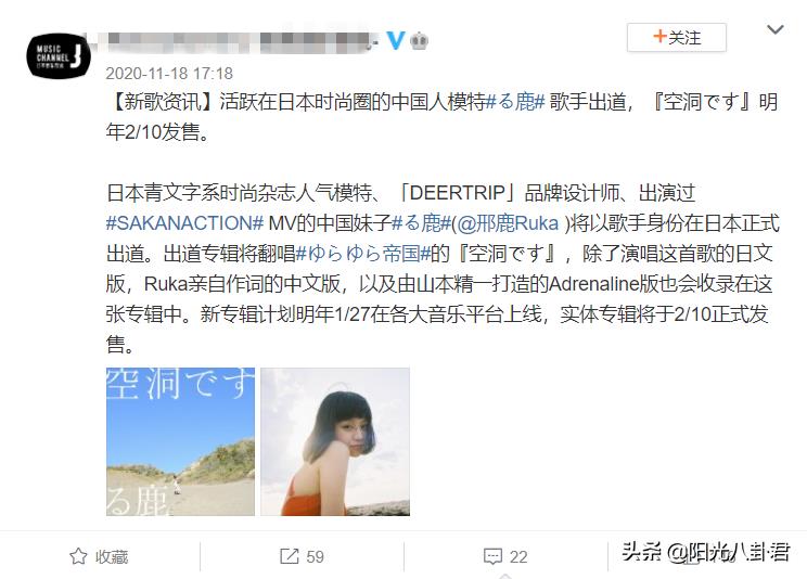 因为外形靓丽而且气质独特,内地网友也逐渐关注到了这位在日本发展的土生土长的重庆妹子,随后,邢鹿不仅粉丝火速增加,资源也是越来越好,去年11月,邢鹿还转型成歌手在日本重新出道,并于今年2月发了实体专辑。