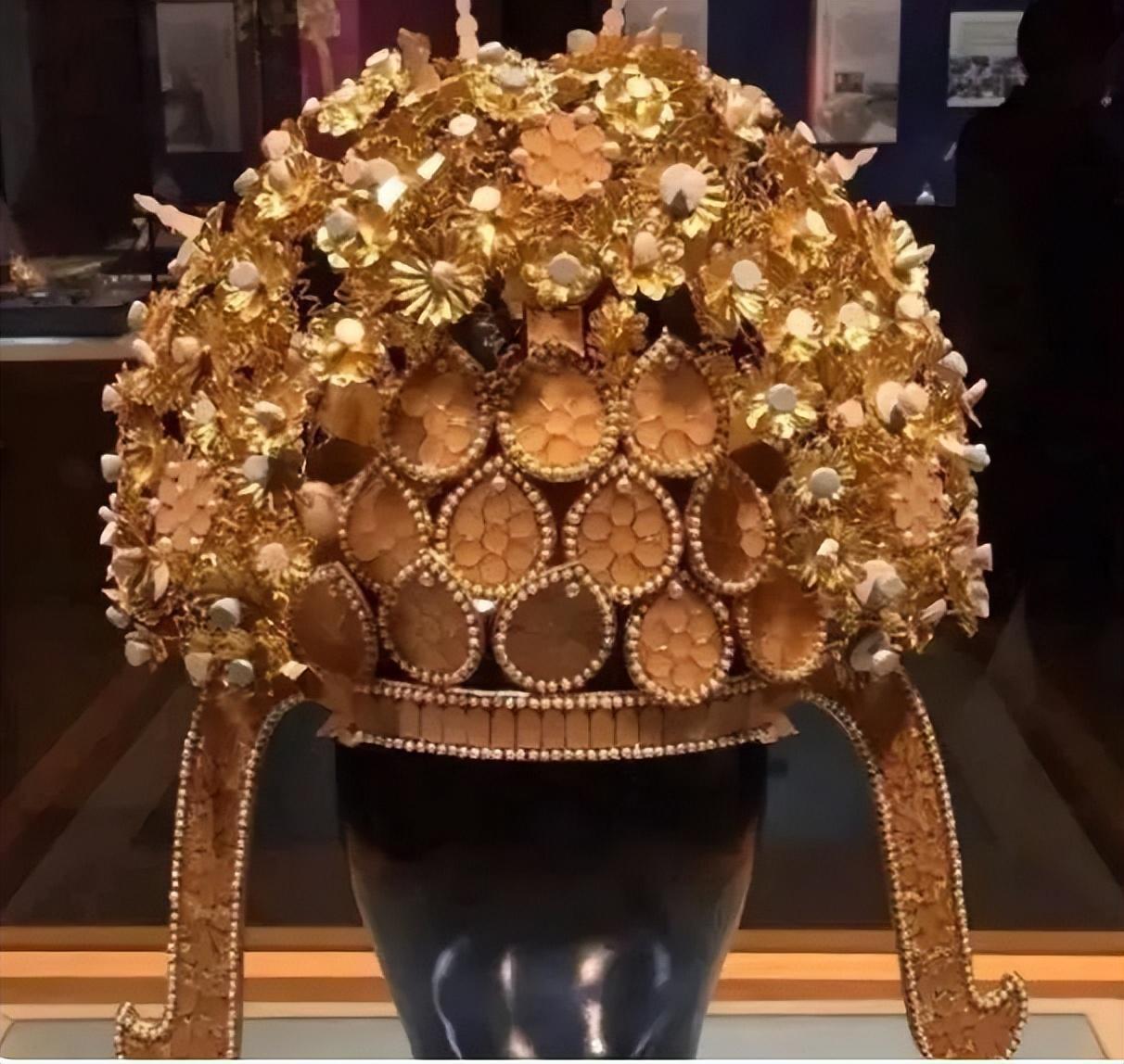 在墓地中还发现了一顶凤冠,经过专家三年的精心修复,这顶凤冠的框架由两博鬓、十字交叉的两道梁和呈环带的三道箍组成。凤冠上装饰着13株花树,以及冠后脑位置的12块水滴形饰件,呈现出唯美而华贵的设计。这顶凤冠的发现让人们更加深刻地感受到隋炀帝及其皇后的尊贵身份,也表现了古代工匠的高超技艺。