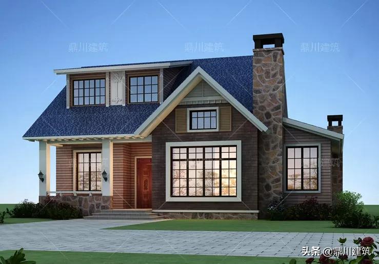 很低调简单的户型,阁楼窗户别具特色,外墙用的是棕色的真石漆,蓝色的屋顶也很有神秘感,屋顶还有采光窗,夜晚的时候看星星也不错!