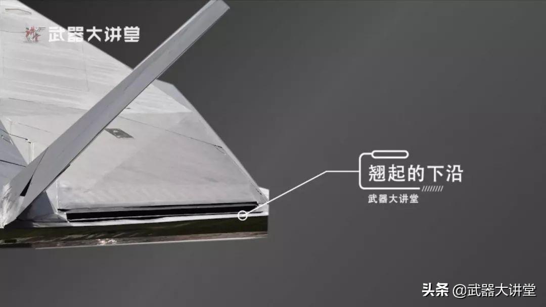 这个喷口长1.65米、宽0.10米,里面贴有航天飞机所采用的防热瓦,内部设计了 11片垂直导流片,导流片第一个作用是可以加速排气冷却,第二个是能疏导排焰,下缘向后上方翘起,这是为了降低机尾的雷达反射,同时也可以对朝下方的红外辐射起到遮挡作用,能起到很好的雷达和红外隐身的双重效果。