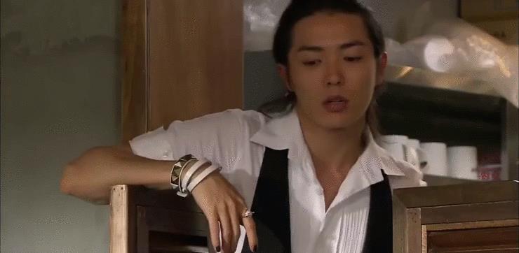 《咖啡王子一号店》里的金材昱,长发、细眉,黑指甲,完全日系。