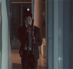 这枪据说很沉,为了耍帅(其实是为了角色),金先生也是很拼了。