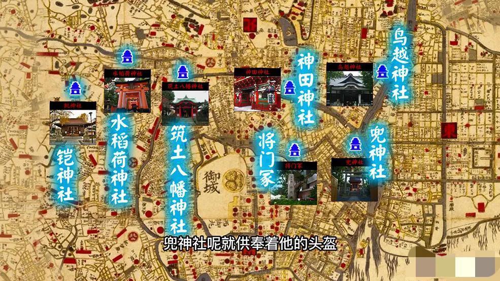 德川家康修建了七个神社,分别供奉平将门的盔甲、头盔和肉体等。这七个神社连起来形成了北斗七星的形状。德川家康之所以选择北斗七星的形状,是因为平将门崇拜的神是妙见神,而妙剑神是北斗七星的神。