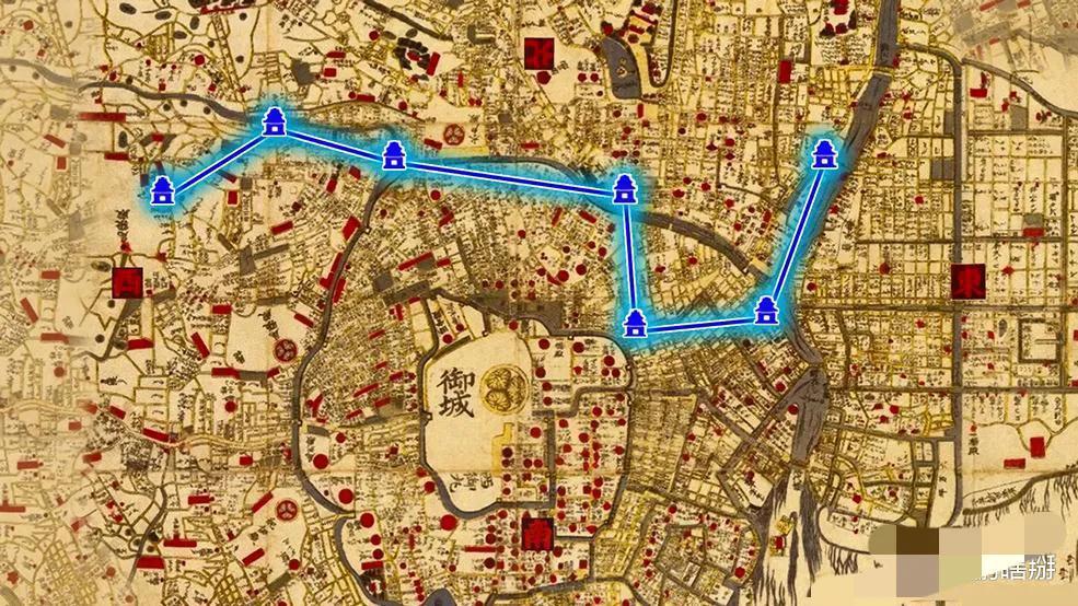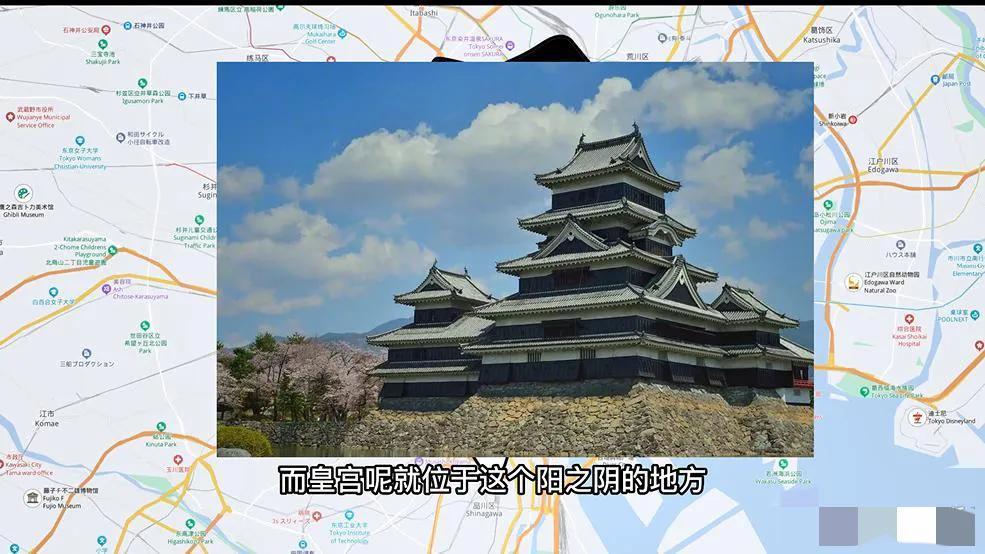 我们刚才提到山手线的太极图,其中白色部分有一个黑点,黑色部分有一个白点。这个白色部分的黑点被称为“阳之阴”,是一般老百姓无法进入的神秘地方,只有神才能进入。而皇宫就位于山手线的阳之阴之处,也就是太极图的白色部分的黑点所在位置。因此,皇宫的位置并不是随意选定的,而是必须正好位于阳之阴之处才行。