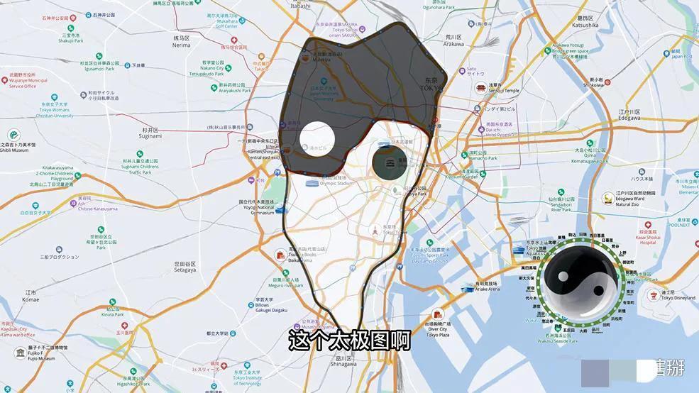 反正是魔鬼邪恶这些东西进不去了,那么黑色里边这个白点叫做阴之阳,阴之阳是无法之地,就是“魔鬼邪神”都住在那儿,而就是日本的新宿所在地它也是日本最乱的地方,所以,从风水上来说的话,皇宫属于这个清净神圣之地,而新宿,属于最乱最黑暗的地方。,讲到这儿大家可能感觉出来了,日本这是一个神奇的地方吧?连政府都在使用法力来治国。