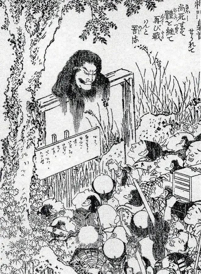 他是唯一一位反叛天皇被枭首示众的武将,被砍掉的头充满了怨念,想飞到东京找寻自己的身体!然而却因法力不足落在了途中!为了复仇,他施展出强大的怨力,诅咒了天皇。他的怨灵又被后人利用,形成了一个强大的结界,庇护了东京300年之久,直到现在依然存在!