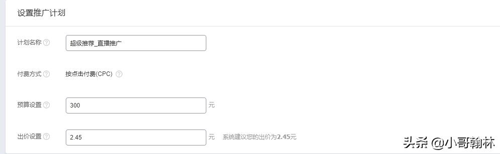 这个计划按自身所能接受的费用设置预算,出价可以按系统建议出价,之后按每次数据情况去调整计划的出价。