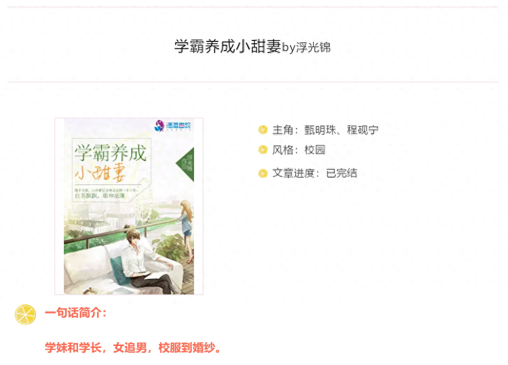 26.「女追男+校园甜宠文推荐」学霸养成小甜妻by浮光锦,糖分超标