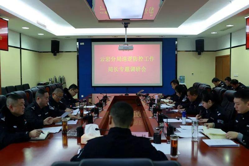 为贯彻落实市局党委“1461”总体布局“精装修”以及队伍执行力建设提质增效的相关要求。2018年1月14日上午9时,云岩分局局长、督察长林超组织分局党委委员、副政委李刚,分局党委委员、政工室主任陈林以及指挥中心、巡(特)警大队、政工室、网监大队相关负责同志,在分局党委会议室召开“云岩分局巡逻防控工作局长专题调研会”。