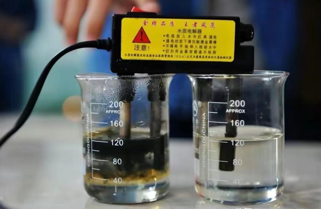 当你在犹豫要不要安装净水器时,如果有人用实验证明自来水非常脏那你一定不会再犹豫了吧。于是商家想出了电解质实验,试验中能直接看到自来水在通电后有大量杂质产生,而净水器过滤后的水不会有。别慌,电解质实验并不能证明自来水不干净,那些杂质是自来水中的铁离子在通电后产生的化学反应。而净水器过滤后的自来水是纯净水,因此无变化。