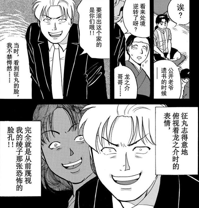 真的如此吗?龙之介顾不了那么多了。征丸被杀之后,他就是巽家的继承人。他赶走了金田一等人,让警察赶紧结案。在“祭典”之后,他就可以拥有巽家的一切,至于真相是什么,这根本不是他想要知道的事情。