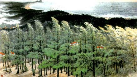 关山月《绿色长城》,中国画,144.5×251cm,1973年(新中国美术图史)