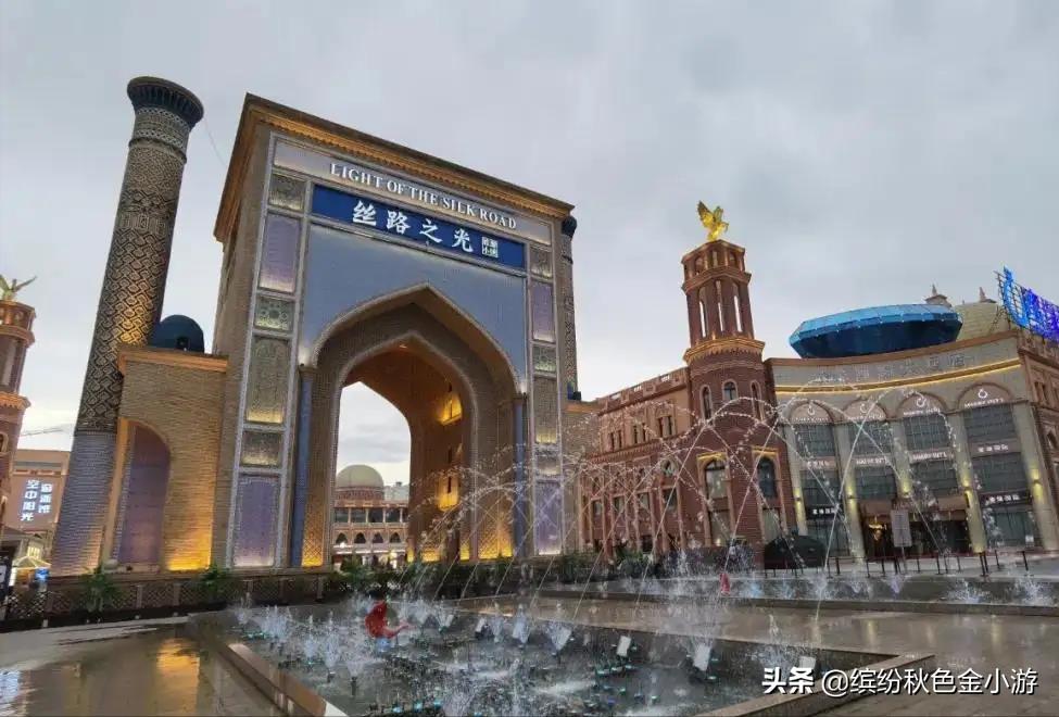 7、丝光之路旅游小镇。位于伊宁市经济开发核心区重庆北路。是一个集餐饮、酒店、娱乐、休闲民俗特色和非遗文化展示的旅游小镇。是伊犁最大的夜市,不仅规模大,美食还物廉价美,成了本地人生活了好去处。晚上有灯光喷泉、美食夜市。