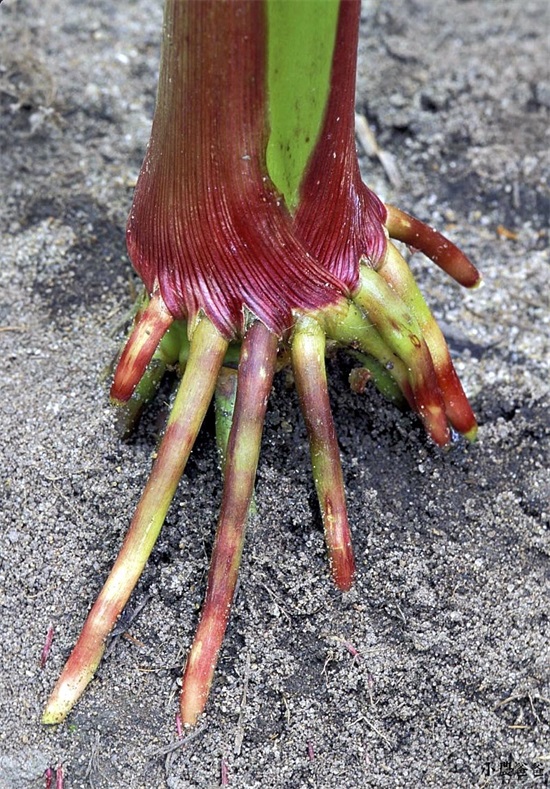 为了强化支撑力,有些植物会从接近地面的茎节上发展出坚韧的「支持根」,强化对植物的支撑力。
