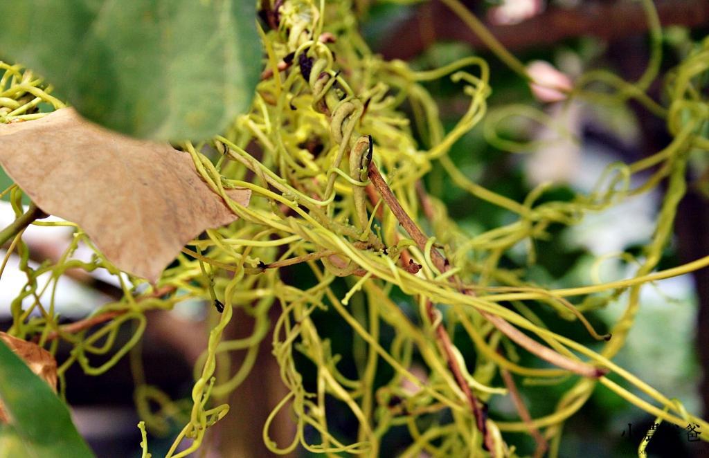 寄生植物是植物界的懒惰虫,本身不行光合作用,利用寄生根伸入寄主植物的体内,直接吸收寄主的养分长大。