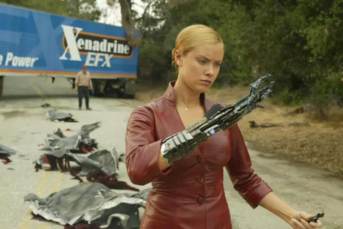 TX的金属内骨架上覆盖着液态金属,拥有前一代机器人T-1000 的任意改变形体外观的能力。更厉害的是,她还可以制造各种武器,包括火焰喷射器和脉冲步枪。她的手指上有纳米机器人,可以注入电脑和其他机器。
